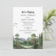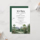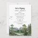 Invite a tus seres queridos a celebrar tu fuga con esta invitación de recepción rústica de las Montañas Rocosas. Con un paisaje natural bellamente pintado con árboles de pino en acuarela, aves volando alto y majestuosas montañas, el diseño está colocado sobre un fondo de papel kraft claro falso para dar una sensación natural y al aire libre. Las tarjetas de RSVP están disponibles por separado.