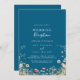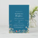 Esta invitación a la boda con flores silvestres de la marina es perfecta para un moderno fiesta post-salida. El diseño se compone de flores silvestres rosas, violetas, amarillas, polvorientas azules, rojas, borgoñonas, montadas en un interminable y delicioso patrón floral que evoca la belleza natural. Las tarjetas RSVP se venden por separado, o puede ver los detalles de RSVP en la parte posterior o inferior de la tarjeta.