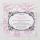 Mostrada en un shimmer Pearl muy popular, esta invitación tiene un patrón de coronación rosada Pastel impreso en el fondo en la parte delantera y en la parte posterior. Un Oval negro con lujosas viñas enmarcan el texto dentro. Los nombres de Bride y Groom están resaltados en un suave rosa y el apellido de los recién casados en Golden. Cuerpo de texto mostrado en negro. Elige tu elección de papel y personalizar de sus imágenes si lo deseas.