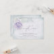 Recepción de Boda | Asegúrese de que sus invitados tengan la información de su recepción a mano con este inserto que presenta una rosa lila pastel con hojas plateadas y destellos colocados frente a un bonito fondo azul vintage anticuado. La caligrafía script se combina con una fuente contemporánea que le da un atractivo moderno. Esta es parte de una colección de papelería de boda con accesorios de boda a juego. Diseño creado para BarefootBride ™ © por WhimsicalArtwork ™
