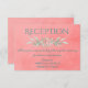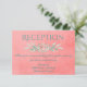 Esta hermosa tarjeta de recepción con rubor rosa es la solución para las parejas que están organizando la recepción de su boda en un lugar separado de la ceremonia de matrimonio. Con un color pergamino rosa como fondo, los detalles de la recepción están listados en una fuente azul complementaria. Hay un hermoso diseño floral rosa y verde justo debajo del encabezado. Echa un vistazo a la colección para otros artículos relacionados con la boda. ¡Personaliza hoy tu tarjeta de recepción!