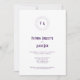 Presenta a tu boda con un toque de sofisticación y encanto retro utilizando la invitación de recepción Minimalista en un círculo violeta. Esta elegante invitación presenta un elegante diseño basado en texto, resaltado por un monograma de las iniciales de la pareja en la parte superior, rodeado de delicadas líneas violetas. Los nombres de la pareja están escritos en un elegante estilo retro, añadiendo un toque único e intemporal a la invitación. La parte trasera de la invitación se deja en blanco para que se vea limpio y sin demasiadas precisiones. Perfecto para parejas que aprecian la simplicidad y la elegancia, esta invitación marca el tono para una celebración memorable y elegante.