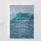 Anuncio de boda privado con texto de invitación a la recepción incluido. Las olas rompientes y el agua verde mar del océano son el fondo para el texto blanco impreso en un estilo de letra informal. Incluya los nombres de la pareja y anuncie que ahora son "Sr. y Sra." luego use la plantilla de párrafo para contarles a todos la fecha y ubicación de la ceremonia e invítelos a una fiesta especial para los recién casados. La redacción se puede configurar como desee, con los recién casados invitando, o alguien más invitando. El reverso es de color verde mar sólido. Elija cualquier tamaño que se adapte a la redacción y actualice con papel especializado según sea preferido.