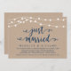 Luz de Cuerda de Granja Rústica Moderna Hermosa, fuente de letra Script azul marino en fondo de papel Kraft, Anuncio de Boda Fugada, tarjeta de invitación (Recién Casados). Esto es perfecto para la recepción de su boda y la fiesta de celebración después de la boda. Agregue sus detalles en la fuente / letra coincidente.