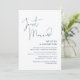Esta es la tarjeta de invitación para la fiesta de boda fugaz, con un diseño minimalista / minimalista de letra Azul Marino con clase (Recién Casados)