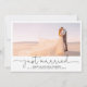 Recién Casados Invitación para Recepción de 4 Fotos - Anuncia tu boda después de tu fuga o ceremonia privada, e invita a tus invitados a tu recepción, con esta tarjeta de invitación de recepción de 4 fotos moderna y trendy para la celebración después de la boda. Con una foto en la parte delantera colocada detrás de una apertura panorámica, y 3 fotos en la parte posterior, este diseño te da muchas opciones. "recién casados" está escrito debajo en tipografía de letra a mano, para un look fresco y casual, junto con tus nombres, fecha y ubicación. Todos los campos de texto son completamente personalizables: el color, la tipografía, el tamaño y el texto pueden cambiarse para adaptarse a tus necesidades. La parte posterior de la tarjeta presenta toda la información de la invitación y tres fotos verticales de la boda. Derechos de autor de Anastasia Surridge, todos los derechos reservados.
