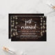 Recién casados, anuncio de huida de boda / tarjeta de invitación, en madera de granja rústica, diseño de luces de cuerda. Esto es perfecto para su recepción de boda y fiesta de celebración después de la boda. Agregue sus datos en letra / letra coincidente.