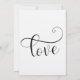 Invite a sus invitados a celebrar su matrimonio reciente con esta sencilla tarjeta de invitación en negro sobre blanco. En el diseño he utilizado una fuente elaborada y arremolinada para crear una superposición de tipografía gráfica que dice "recién casados". Rellene los espacios en blanco de la plantilla con sus datos para personalizar el diseño. Todas las capas se dejaron desbloqueadas para que pueda hacer clic para personalizar aún más y reposicionar el texto o incluso cambiar el tamaño o las fuentes. El color de fondo se dejó blanco, pero esto también es editable; cámbielo a uno de los colores de su boda si lo prefiere. La palabra "amor" se colocó en el reverso, con la misma fuente elaborada que se ve en la parte superior del anverso. Este gráfico se puede eliminar, cambiar de tamaño o reposicionar como desee.