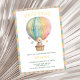Este diseño presenta el tema de la ducha de bebé neutra de género "Recién nacido de Año Nuevo" con un lindo oso de peluche de color agua sentado en un globo de aire colorido.