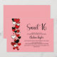 Invitación Red and Black Heart Theme Sweet 16 Birthday