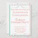 A festive, contemporary Red and Green Stripe Christmas Dinner Party Invitation with elegant script font. Perfect for a holiday dinner party, this stylish design is great for inviting your guests to your festive Christmas gathering.