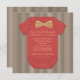 Adorable pinstripe beige y negro, con corbata de arco invitación a la ducha de bebé. Camiseta de bebé roja con corbata de arco sobre fondo marrón y piinstrita negra la invitación a ducharse de bebé es fácil de personalizar para tu evento. Añade tus detalles al frente y/o al revés simplemente eligiendo el botón "Personalizar it!" para empezar a añadir tus detalles del evento, estilo de fuente, tamaño de fuente y color, y redacción. Tenga en cuenta que todos los diseños de invitación que encontrará en Zazzle son gráficos impresos sin joyas, arcos, arcos, grabados en relieve o piezas añadidas.