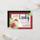 Invitaciones a la ducha de bebé de chicles rojas y negras con adorable chicharrón de bebé con un lindo arco rojo en una hoja y fondo purpurina rojo. Estas invitaciones para la ducha de bebé de mariquita se personalizan fácilmente para tu evento simplemente añadiendo tus detalles. También puede cambiar el color de fondo en la parte posterior.