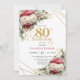 Invitación Red blush roses 80th birthday invitation with gold