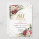 Invitación Red blush roses chic gold accents card 80 birthday