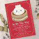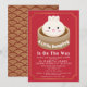 Esta tierna invitación a una ducha de bebé, con un toque de género neutro, "un pequeño boleto en el camino", incluye una bola de masa con una cara sonriente en un vapor chino sobre un fondo rojo. En el reverso, un fondo rojo intenso con motivos de ondas doradas. Artículos coincidentes en nuestra tienda para un tema fiesta completo. La foto de portada ha sido diseñada con recursos de Freepik.com.