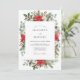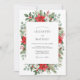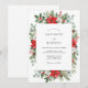 This watercolor design captures the festive spirit of a seasonal event with its vibrant botanical arrangement. A palette of deep crimson, forest green, and snowy white creates a holiday feel. The artwork features elegant poinsettias, holly, berries, pine, and eucalyptus. Natural textures are highlighted by small pinecones and white blossoms.