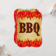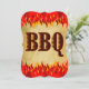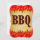 Una fiesta de cumpleaños personalizado o una invitación a la cocina de barbacoa con arte de llamas rojas y naranjas leyendo BBQ en la parte delantera y espacio para texto personalizado en letras de estilo occidental en la parte trasera. Personalizar Para cambiar fuentes, tamaño de invitación, colores de fondo, agregar o quitar texto y más, incluso guardar el diseño para más adelante.