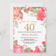 Invitación de cumpleaños 40 a mujeres por la Red Floral Surprise. Flor Floral Botánica de acuarela. Brillantina dorada. Flores Florales De Peonies Rosados. Cumpleaños de adultos. Para una mayor personalización, haga clic en el botón "Personalizar" y utilice nuestra herramienta de diseño para modificar esta plantilla.