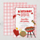 Red Gingham Birthday BBQ invitation, Summer Outdoor Grill Birthday Invite, Editable Barbecue Grill Birthday Invite
