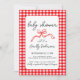 Invitación Red Gingham Cute Bow Handwriting Baby Shower