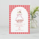 This playful invitation features a bold red gingham check, a watercolor champagne glass topped with cherries, and a cute ribbon bow — the perfect mix of cozy picnic vibes and girls’ night sparkle.