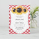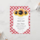 Invitación a la boda de gingham roja, ideal para una boda rústica roja y amarilla inspirada en las flores de girasol. Los objetos a juego completan esta invitación de boda floral con girasoles en un fondo de gingham rojo adornado con luces de cuerda.