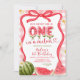 Red Gingham Watermelon Bow Summer Birthday Invitation, One Sweet Girl Birthday Invite, Editable One In A Watermelon Kids Birthday