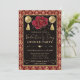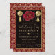 Celebrate love in lavish style with this ornate Valentine’s Day dinner party design. A rich red and gold heart damask pattern frames the invitation, while a dramatic black background and elegant gold typography set a formal tone. The centerpiece features a red rose flanked by golden ornaments and tassels, adding festive glamour and romantic flair. Perfect for upscale Valentine’s events, this design blends opulence, warmth, and celebration.