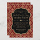 Invitación Red & Gold Heart Damask Valentine's Dinner Party