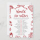Add a fun and flavorful twist to your celebration with this Red Italian “Would She Rather” Baby Shower Game. Designed in a charming hand-drawn Italian style, it features playful pizza illustrations, whimsical food doodles, and bold red accents—perfect for an Italian-themed baby shower, “That’s Amore” celebration, or cozy family gathering.