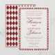 A timeless blend of classic and modern design, this wedding stationery and day-of collection features a merlot red harlequin pattern inspired by Old Hollywood glamour and old-money luxury. Perfectly curated for your bridal shower, rehearsal dinner, and wedding day, this collection brings a refined, fashion-forward statement to every celebration moment.