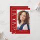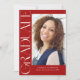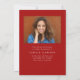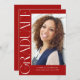Rojo Moderno Elegante Vertical Dos Invitación de Graduación de Fotos incluye un tipo divertido y moderno, junto con su foto de graduación. Añada los detalles de su fiesta o de la casa abierta a la parte posterior.