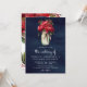 Invitación Red Peony Floral Mason Jar QR Code Blue Boda