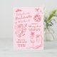 Cute cupid-themed romantic Bachelorette Weekend invitation in pink and red with digitally hand-drawn coquette details with lots of bows, like a disco-ball, a cupid ready to fire an arrow, drink glasses, and a tiara.