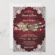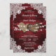 Invitación Red Rustic Wood Burlap Lace String Lights Boda