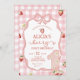 Red Strawberry Daisy Coquette Berry First Birthday Invitation, Sweet One Girl 1st Birthday Invite, Editable Gingham Kids Birthday
