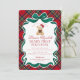 Invitación Red Tartan Plaid Christmas Beary First Birthday