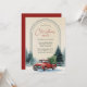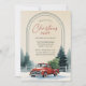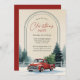 Invitación Red Truck Snowy Pine Trees Rustic Christmas Party