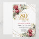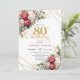 Invitación Red white floral gold accent card 80th birthday