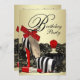 Elegante encaje, frasco de perfume negro y dorado, lápiz labial rojo y zapato rojo de tacón alto plantilla de invitación a la fiesta de cumpleaños. Esta invitación a la fiesta de cumpleaños de cebra roja bonito se personaliza fácilmente para el evento añadiendo los detalles del evento, el estilo del tipo de letra, el tamaño y el color del tipo de letra y la redacción. Por favor, tenga en cuenta que todos los pegatinas, tarjetas y diseños de invitación que encontrarás en Zazzle son gráficos impresos sin joyas, arcos, arcos, grabados en relieve, o piezas o piezas añadidas.