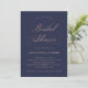 Esta elegante y elegante ducha de novia cuenta con una gran caligrafía de oro rosa, moderna y rápida, con un fondo azul oscuro y oscuro.