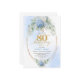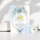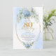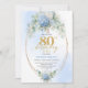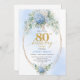 Invitación Refined Chic Dusty Blue Floral Gold 80th Birthday