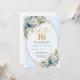Celebrate a milestone moment with this elegant Sweet Sixteen invitation, featuring a refined watercolor design of dusty blue florals blended with soft white flowers and fresh eucalyptus greenery. Framed by a shimmering gold glitter border and paired with graceful script lettering, this invitation sets a sophisticated tone for a truly unforgettable Sweet Sixteen, Sweet 16th, or 16th birthday celebration.