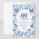 Invitación Refined Navy Roses Floral Toile 60th Birthday