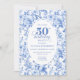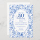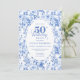 Invitación Refined Royal Blue Toile de Jouy Floral 50 Birthd