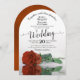 Esta hermosa invitación a la boda incluye una fotografía de un rosa de color rojizo de tallo largo y color naranja, que se pone a su lado reflexionando en un estanque de agua con olas y olas. La tipografía presenta una elegante caligrafía de escritura y la redacción es formal, haciendo esta invitación tanto moderna como clásica. La parte de atrás es un hermoso color de madera quemada con baldaquino. Esta invitación está optimizada para la forma o corte de arco. Una forma magnífica de invitar a tus amigos y familiares a compartir en tu día especial.