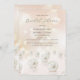 Esta elegante y moderna invitación a la ducha de novias con glamour presenta un fondo de melocotón crema que refleja las perlas.