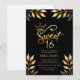 Invitación Regal Gold & Obsidian Sweet 16 Birthday Invitation