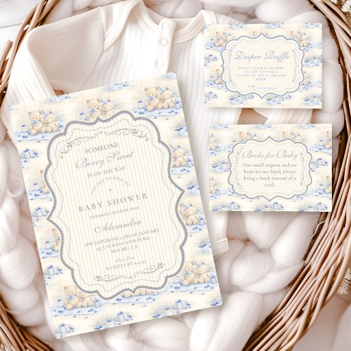Invitación Regalo de osito de arándanos Toile Shower de bebé